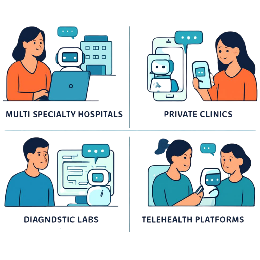 Our AI Chatbot for healthcare is built to meet the specific needs of hospitals, clinics, labs, and telemedicine providers.