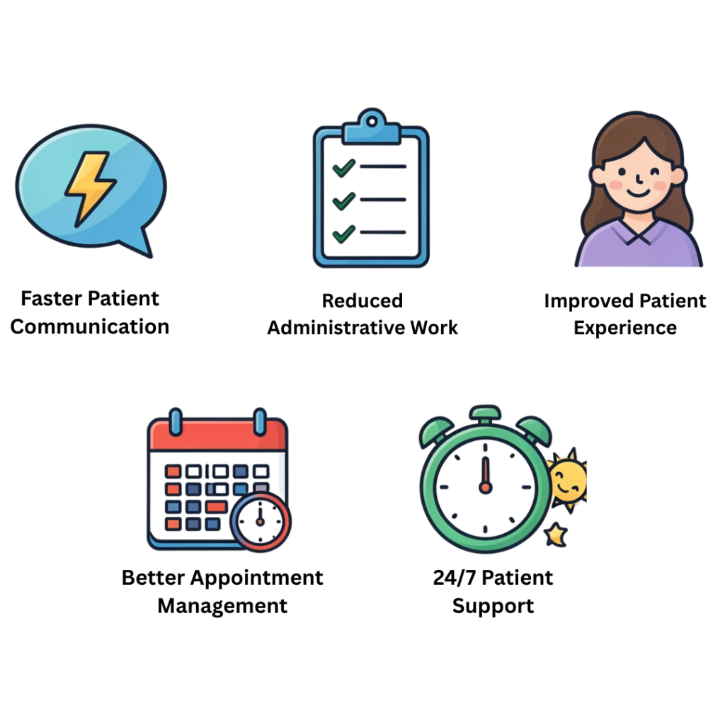 - 24/7 Patient Assistance: Patients can ask questions anytime and receive immediate responses from the chatbot without waiting.