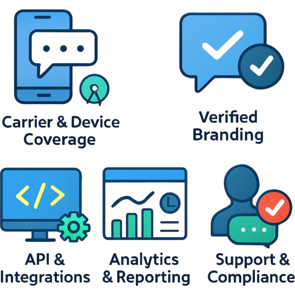 - Carrier & Device Coverage: Ensure the provider supports RCS delivery across major carriers and devices in your target regions.