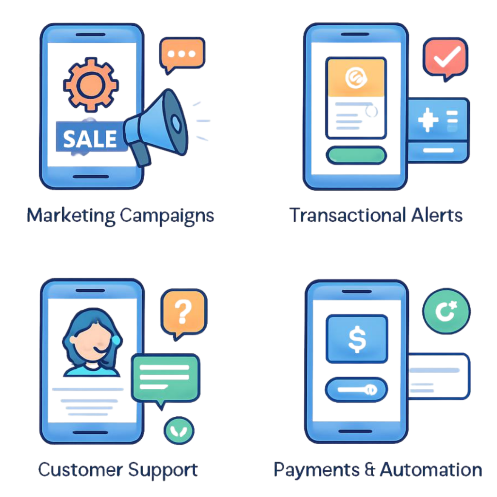 - Payments & Automation: RCS supports secure and action-driven messaging by allowing businesses to include dynamic buttons and embedded links within messages.