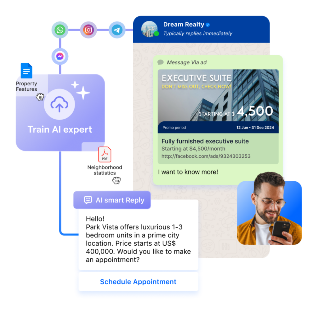 Simplify your lead capture, follow-up, and site visit management with an end-to-end communication platform customized for real estate builders, channel partners, and property developers.